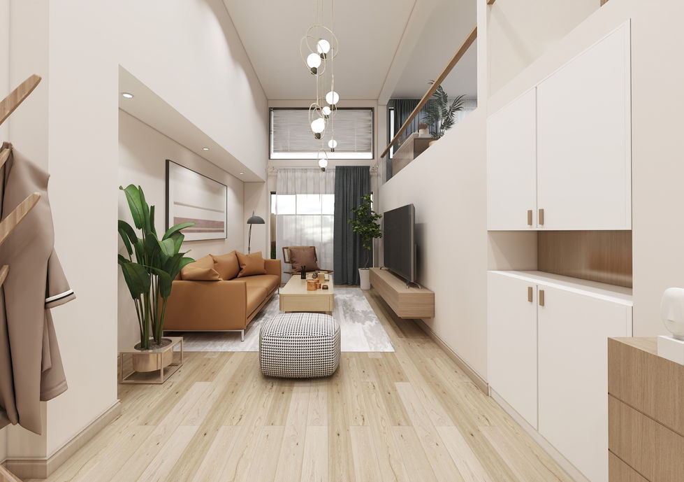 A modern multi-story residential restorated building with elegant interior designs showcasing the construction company's expertise in creating stylish living spaces.
